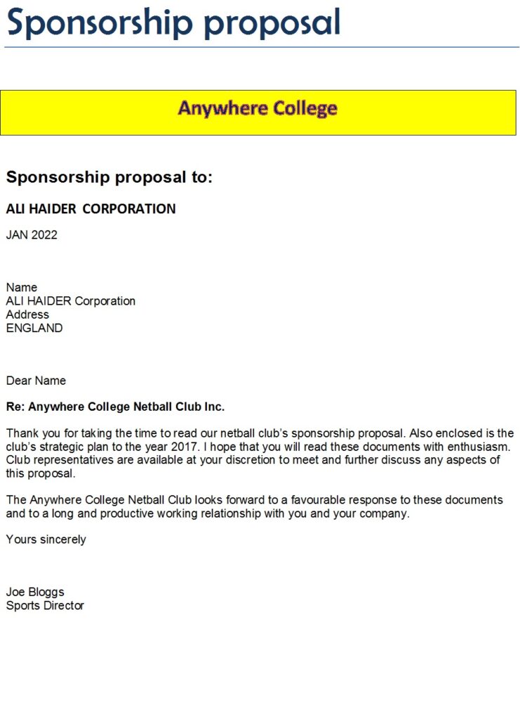 What Is A Sponsorship Proposal? The main purpose of any Sponsorship Proposal is to facilitate an event or...