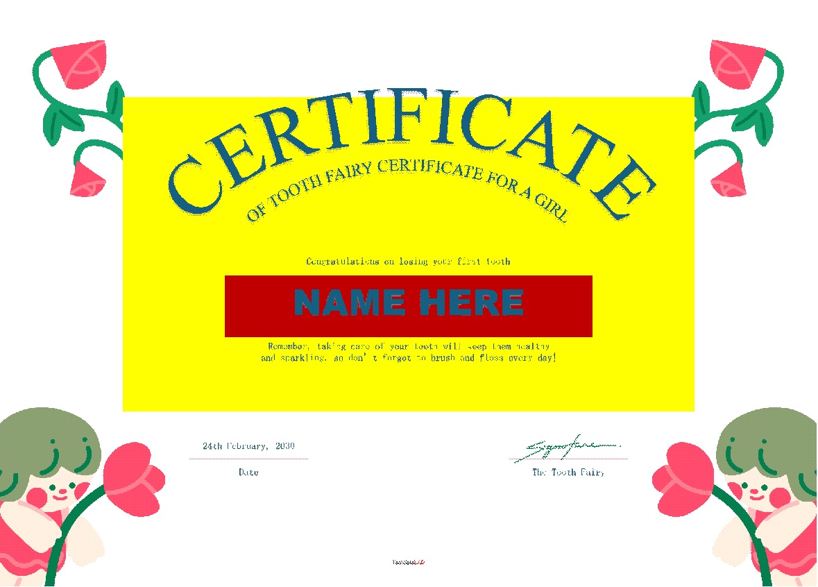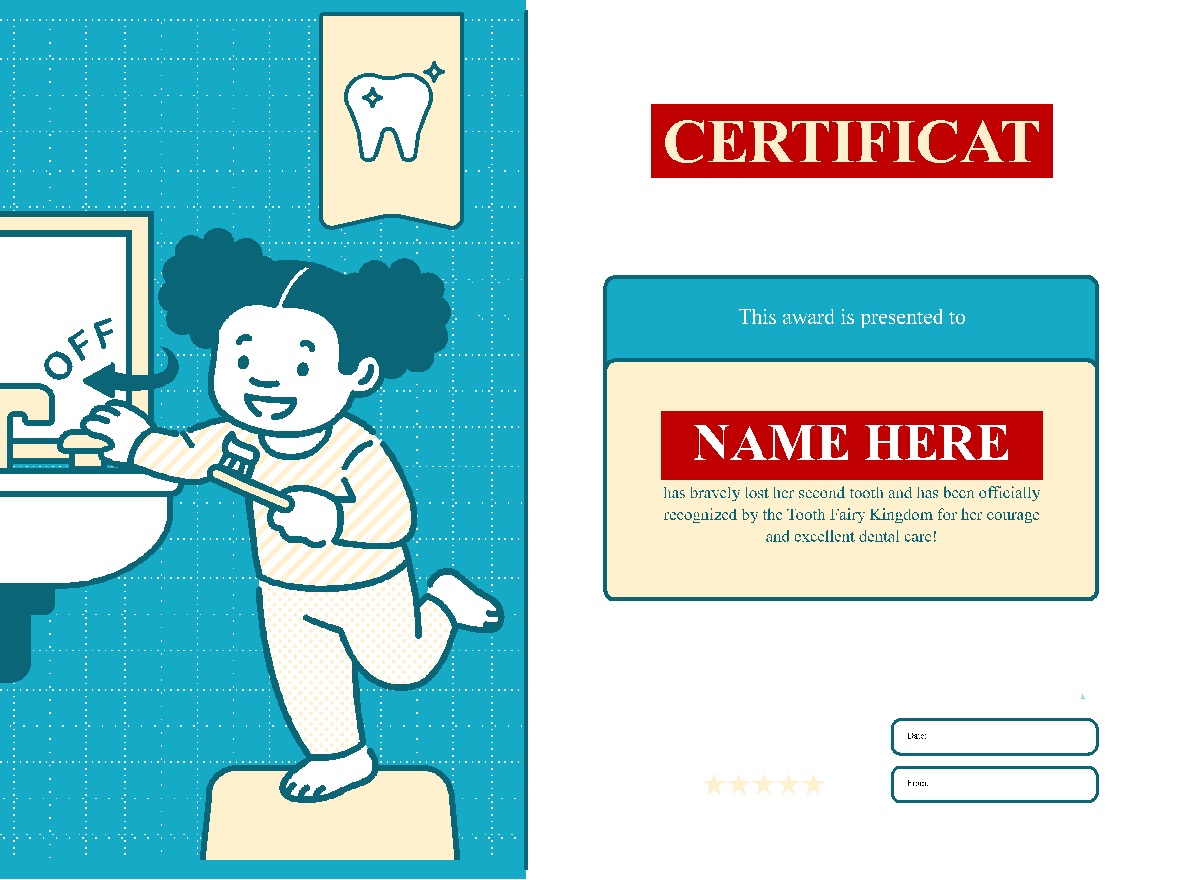 Tooth Certificate Template: Easy To Edit Template: